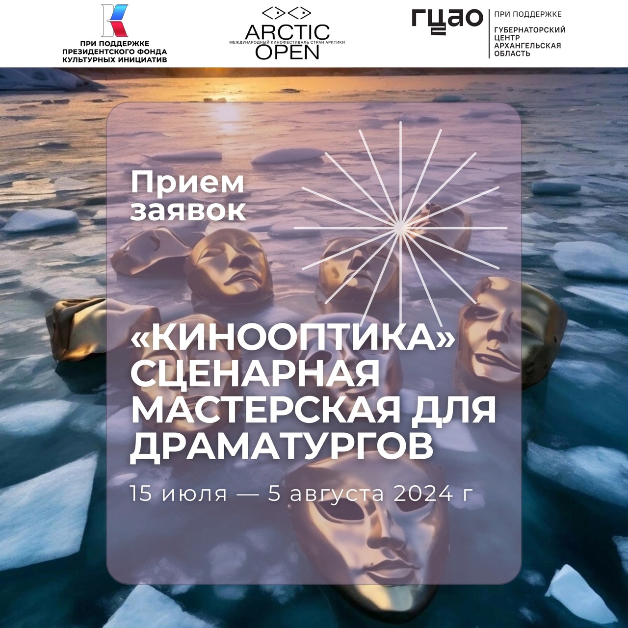 В рамках образовательной программы и проекта «КиноСлово» VIII Международный кинофестиваль ARCTIC OPEN открывает мастерскую для драматургов «Кинооптика — Архангельск и вокруг». Проект реализуется при поддержке Президентского фонда культурных инициатив и Губернаторского центра Архангельской области.