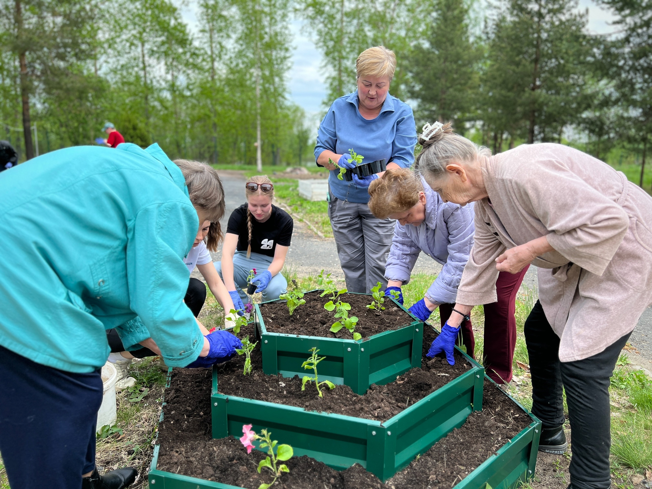 и инвалидов «Опека» на очередном занятии высадили на клумбах петунии и