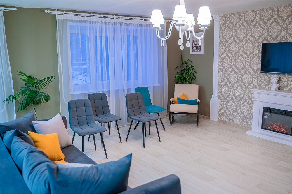 Дизайнером проекта стала девушка, которая откликнулась на зов о помощи в социальных сетях. На безвозмездной основе она составила план помещения, которое разделено на две зоны: зона отдыха с камином, книгами, удобной мягкой мебелью, телевизором и проектором и рабочая зона, оборудованная столами и стульями, для проведения занятий с проживающими. В комнате отдыха будут проводиться основные мероприятия проекта, также здесь будут отдыхать и встречаться проживающие.